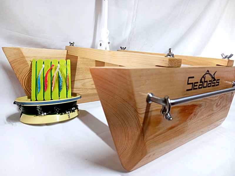 Seabass PROF Tam donanim modelimiz; Demonte şeklinde Naturel renkli koruma boyalı olarak paslanmaz çubuğu ve paslanmaz mapası ile birlikte kasnağa bağlı 0.90 mm. kalınlığında 100 m. misina ve üzerinde paslanmaz üçlü fırdöndülere, klipslerle bağlı 5 adet silikon sahte yem ile ayrıca hareketli Türk bayraklı flaması olan ve üzerinde dalgalara karşı paslanmaz denge ağırlığı bulunan tam donanım kullanıma hazır haldeki hemen ava cikilabilenecek set…